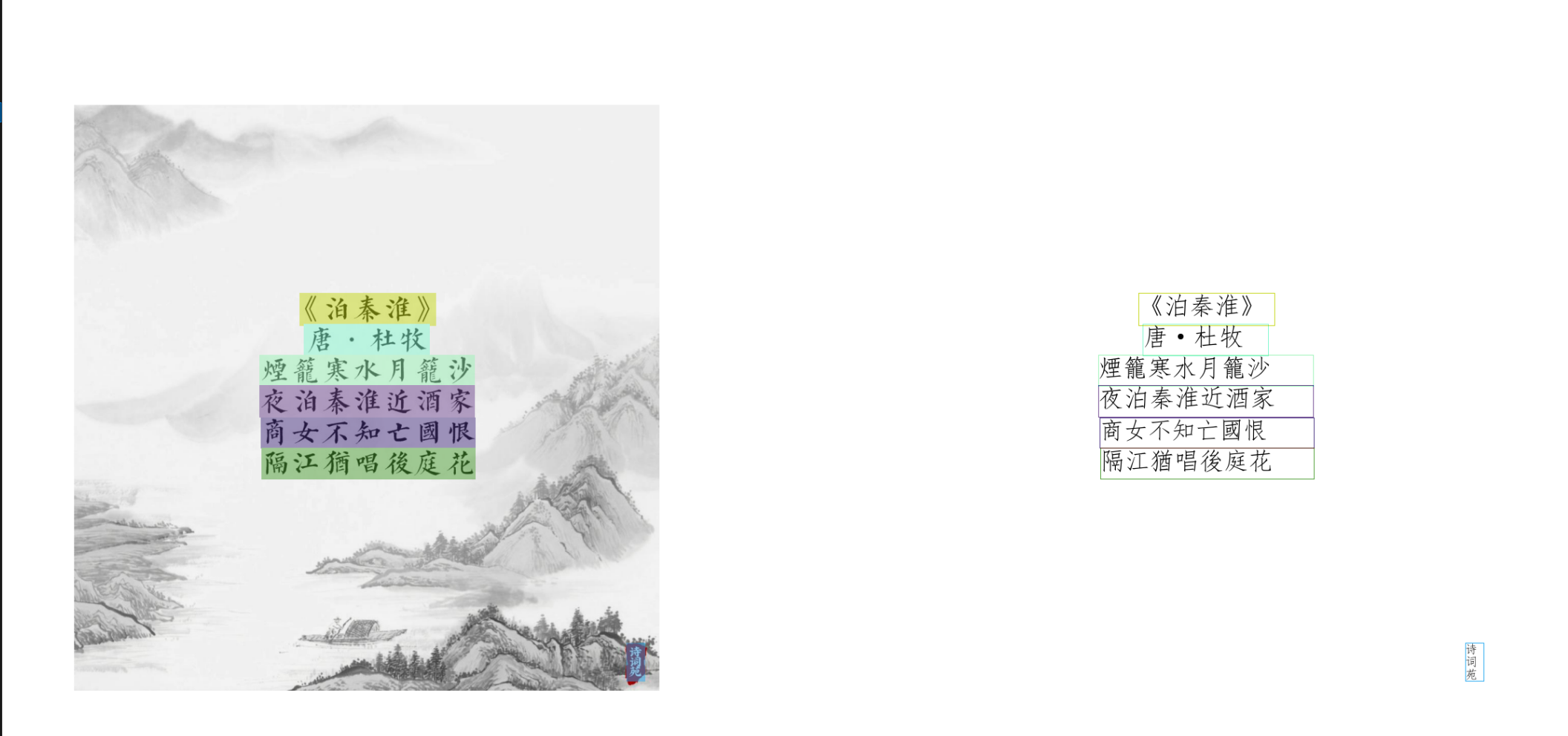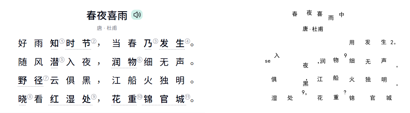 'text': ['', '', '', '', '床', '前', '明月', '光', '', '疑', '是', '地', '上', '省', '', '举', '头', '望', '明月', '', '低头', '忌', '故', '乡']